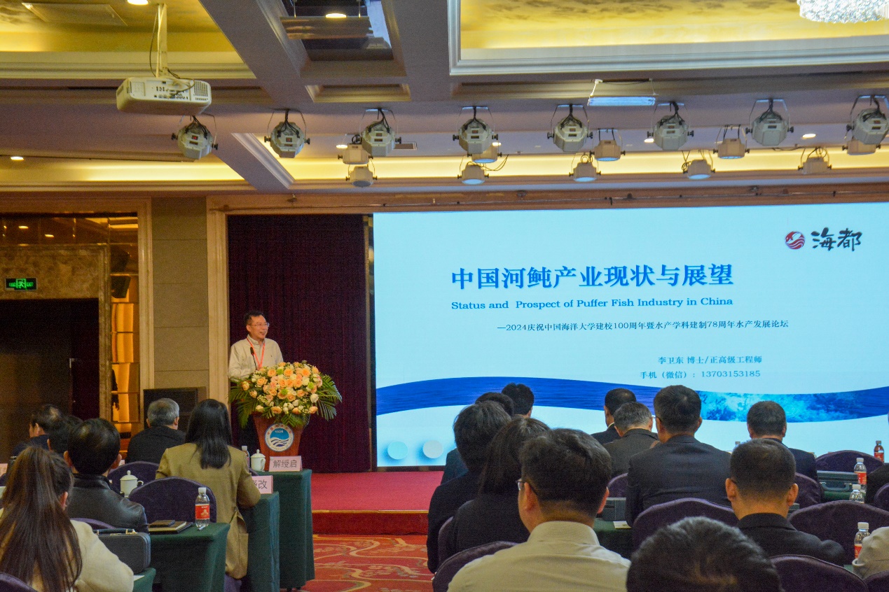 论坛上,多位知名学者、行业领导和企业高管依次登台,分享各自在水产领域的研究进展,带来一场高水平学术思想和文化碰撞的盛宴。中国科学院院士、中国科学院水生生物研究所研究员桂建芳作题为《多倍体鲫属复合种的遗传基础解析与育种技术创新》的报告;中国远洋渔业协会会长张显良作题为《我国远洋渔业的现状与发展趋势》的报告;上海海洋大学校长万荣作题为《新时代中国水产高等教育的机遇、挑战与行动》的报告;浙江海洋大学党委书记严小军作题为《大黄鱼的品质研究及应用》的报告;大连海洋大学校长宋林生作题为《贝类病害防控及预警预报体系建设》的报告;中国科学院水生生物研究所党委书记解绶启作题为《从比较营养学看水产养殖品种的选育》的报告;美国弗吉尼亚理工大学教授焦燕作题为《Reflections from an Alumna and Marine Fisheries Scientist》的报告;通威股份有限公司副总裁张璐作题为《农业和新能源双主业协同发展》的报告;唐山海都水产食品有限公司董事长李卫东作题为《中国河鲀产业现状与展望》的报告。在讨论环节,与会嘉宾就当前学科热点话题展开热烈辩论,激发科研创新的思维火花,促进产学研深度融合。