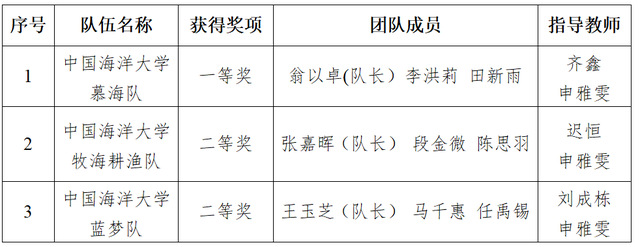 中国海洋大学牧海耕渔队、蓝梦队获团体二等奖
