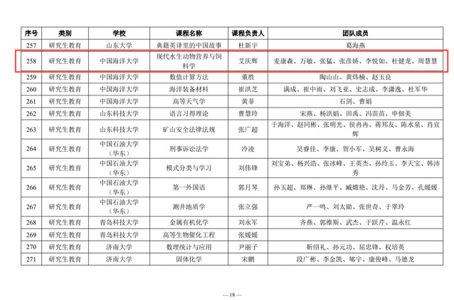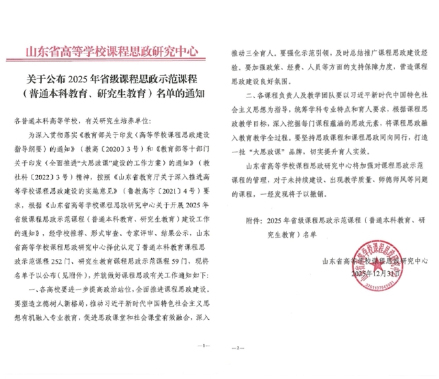 近日,山东省高等学校课程思政研究中心公布2025年省级课程思政示范课程(普通本科教育、研究生教育)名单,中国海洋大学群p 本科生课程“贝类增养殖学”和研究生课程“现代水生动物营养与饲料学”成功入选,截至目前,学院累计有5门课程入选省级课程思政示范课。