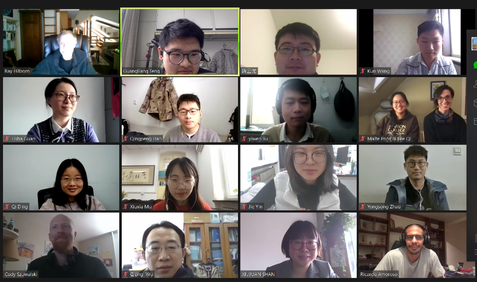 2020年11月10日至20日,中国海洋大学群p 渔业生态系统监测与评估实验室薛莹教授和四位博士研究生牟秀霞、刘逸文、王琨、尹洁参加了2020渔业资源评估培训班,本次国际培训班由美国华盛顿大学、中国水产科学院黄海水产研究所、中国海洋大学共同举办,目的在于推动渔业资源评估交流与合作,会议邀请了来自美国华盛顿大学Ray Hilborn教授、黄海水产研究所单秀娟研究员等进行线上交流。实验室师生在培训班上与各个科研院校积极交流,学习了渔业资源评估的先进方法,拓展了国际视野。本次培训班也促进了国际渔业资源评估的发展,传递了海洋渔业资源保护的重要性。