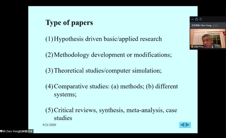 2020年9月22日上午,中国海洋大学群p 渔业生态系统监测与评估实验室客座教授陈勇,应邀为实验室师生进行了题为“Preparing, writing, and publishing a scientific paper in fisheries”的学术报告。陈勇教授从论文发表流程、如何为国际期刊撰写论文、提交论文后的注意事项三个方面进行了详细讲解。实验室研究生就如何取好论文标题、怎样结合中国实际渔业情况撰写高质量论文等话题同陈勇教授展开了热烈的交流和讨论。通过本次学术讲座,实验室研究生学习了论文写作知识,拓展了国际学术视野,为今后撰写高质量学术论文奠定了坚实的基础。
