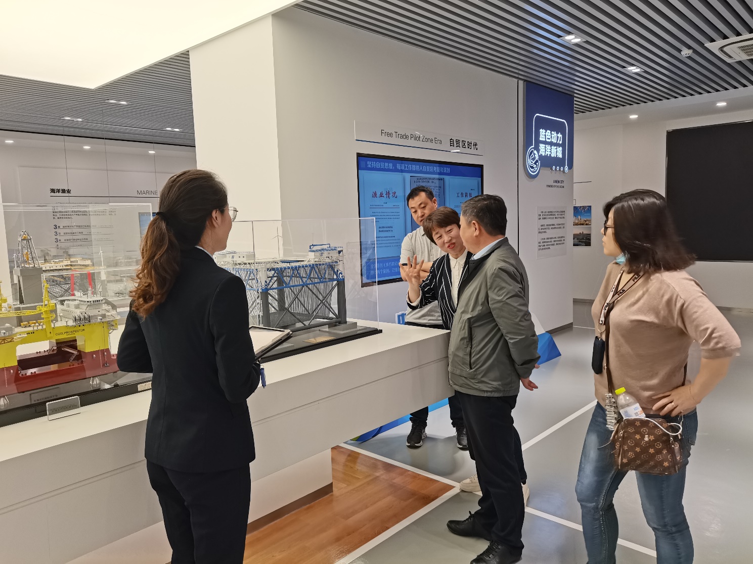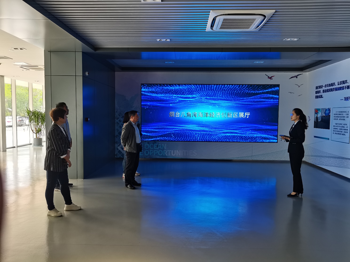 528日,一行人来到烟台经海海洋渔业有限公司,由公司经理史春芳及相关人员陪同下,参观了烟台八角湾海洋经济创新区规划,了解其总体实现目标和布局。然后,与公司相关人员就海洋牧场建设进行了交流沟通。