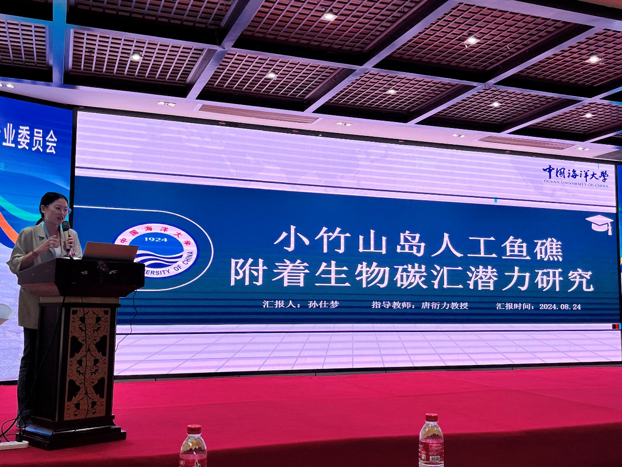 会议上,博士生孙仕梦、硕士生崔煜杰分别作了题为《小竹山岛人工鱼礁附着生物碳汇潜力研究》和《潮流作用下不同排布人工鱼礁群的流场特征及其对风机基础的影响》的口头报告,并分别获得了研究生报告的一等奖和二等奖。会议期间,实验室团队成员还积极与其他高校及科研院所的老师同学进行交流。
